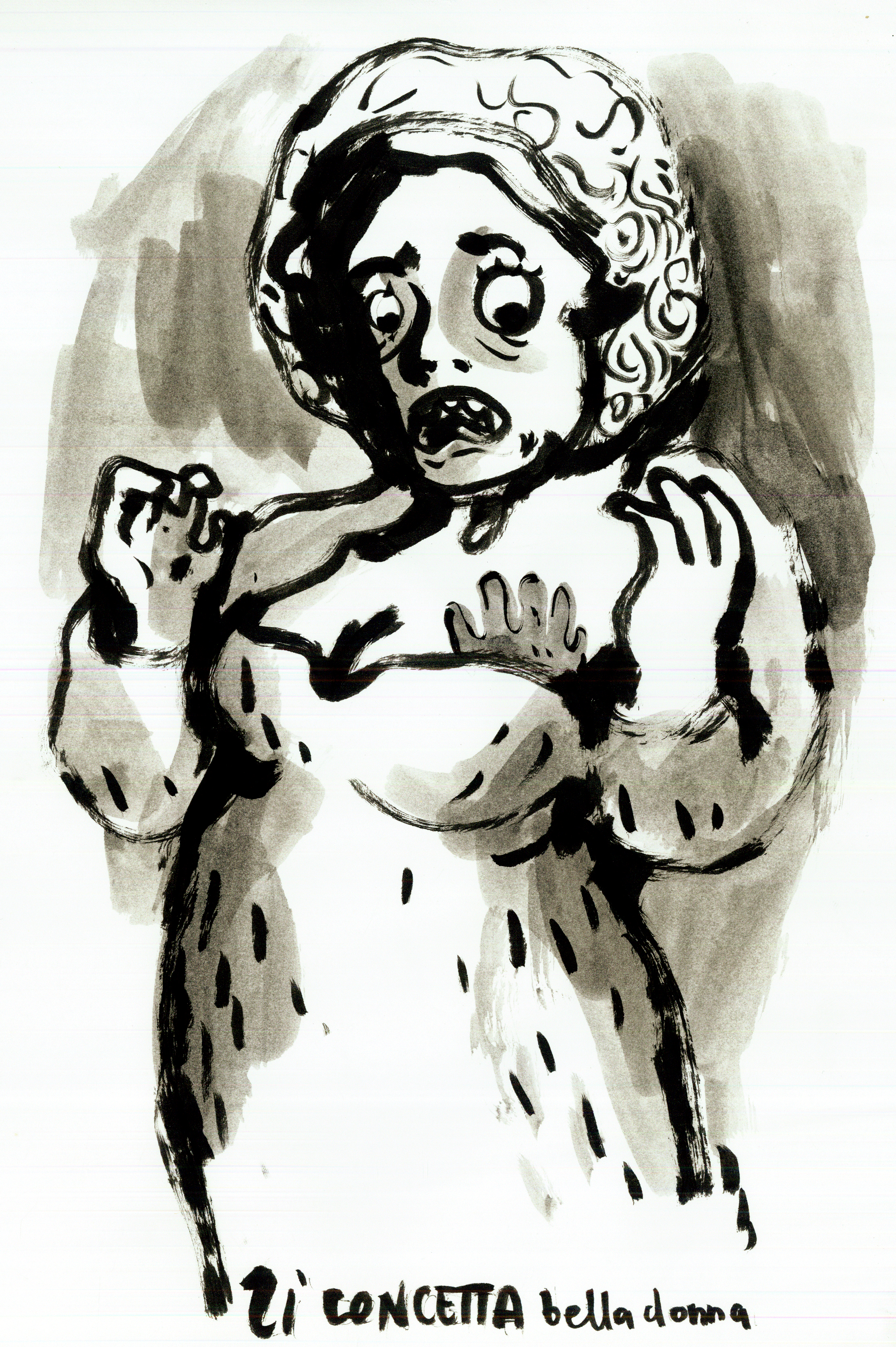 studi per il murales “fiabe e leggende piazzesi”, Belle Singore o Bidduzze, china e acquerello, Piazza Armerina, Aprile 2015