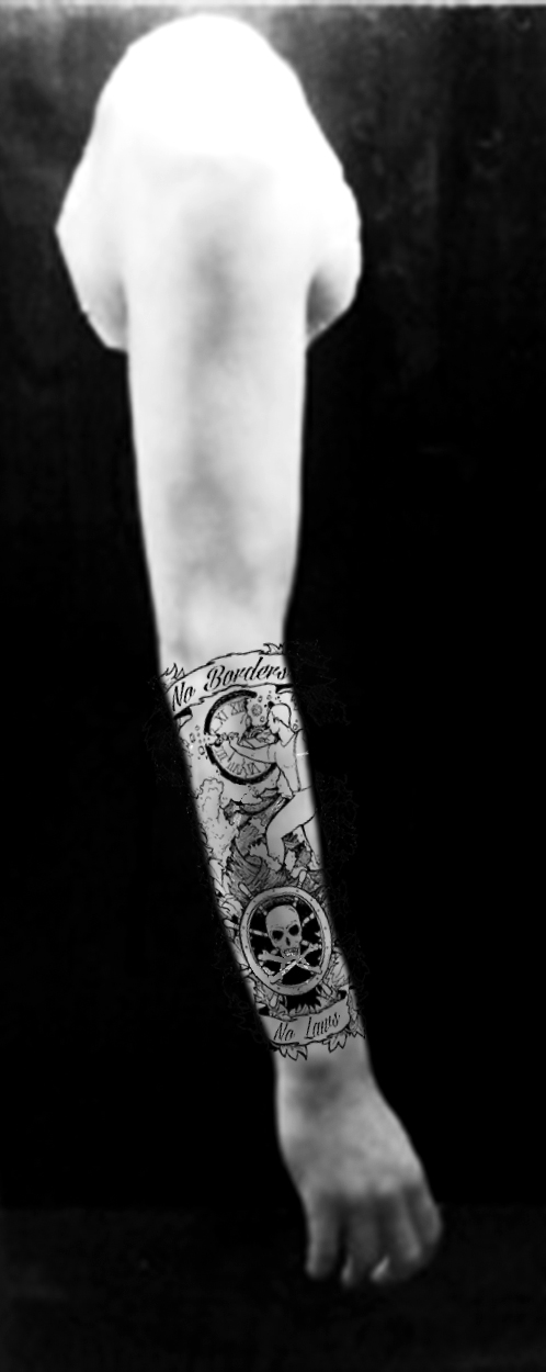 One thought on “Illustrazione su commissione per tatuaggio, “NoBordersNoLaws”