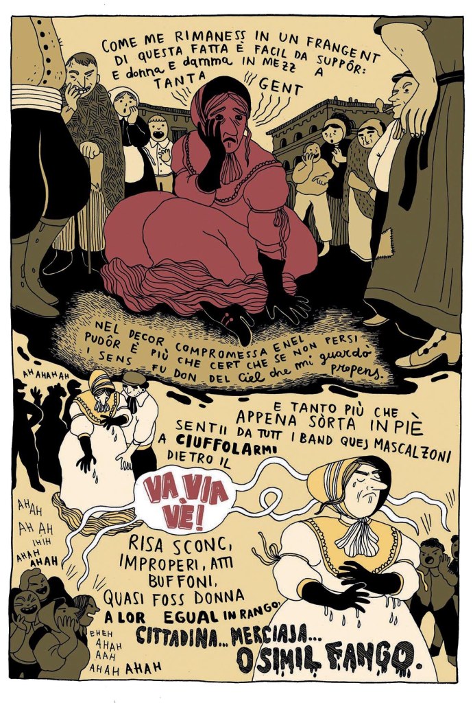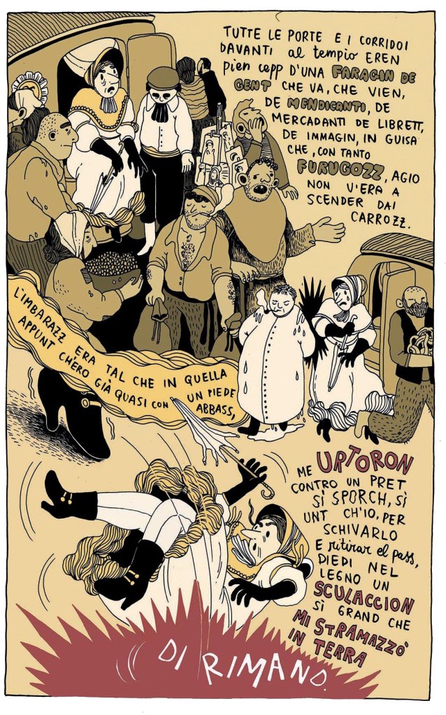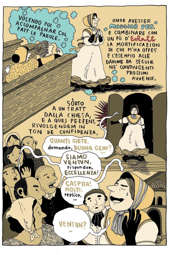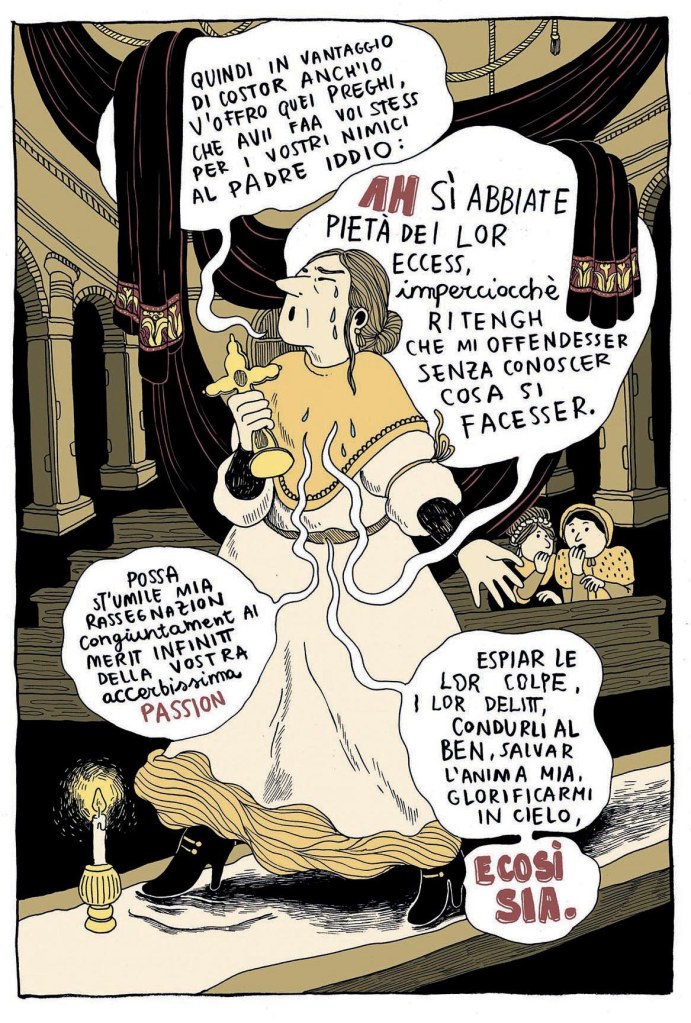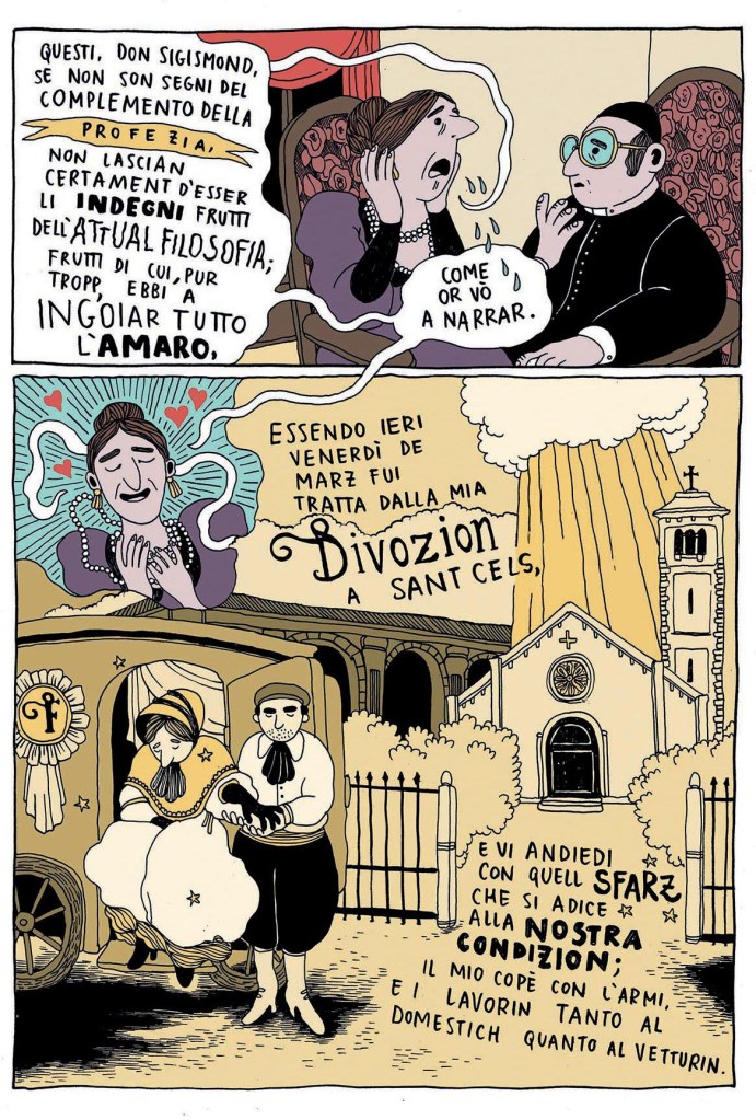 “La preghiera”, poesia scritta da Porta nel 1820, è una finissima satira e critica alla nobiltà milanese. La nobildonna protagonista parla un misto di dialetto milanese, italiano con infiocchettare francesi che ne accentuano ignoranza e presunzione, è infatti essa stessa a collocarsi accanto a Dio, in quanto considera la sua casta eletta e superiore. Nel fumetto il testo è stato mantenuto intatto.