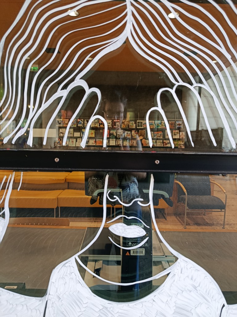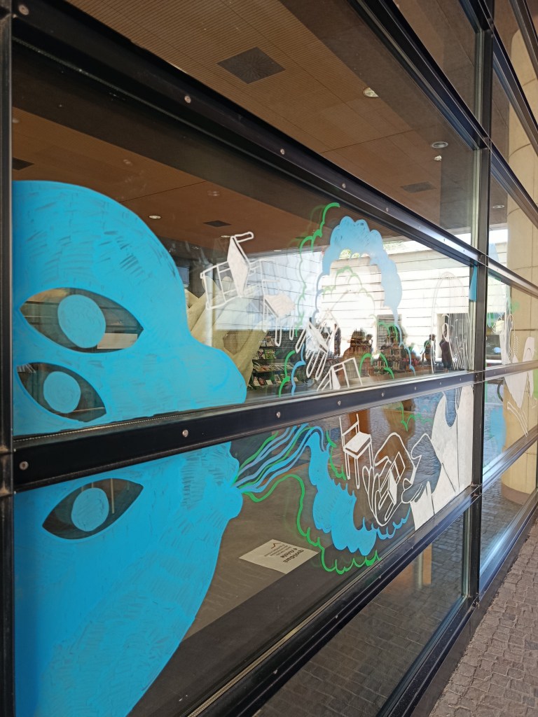 Pennarelli acrilici su vetro.