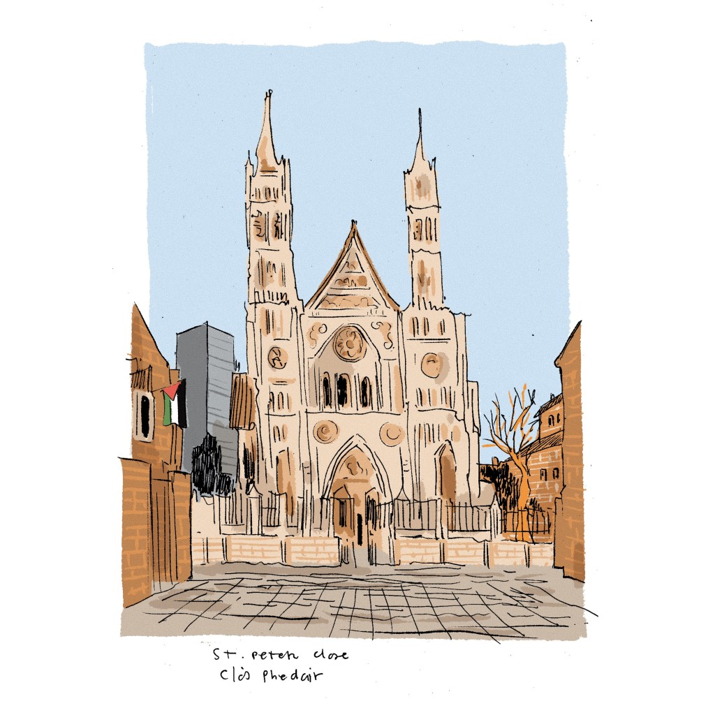 Di seguito una selezioni di disegni realizzati in occasione del viaggio a Belfast con Laura Carrer, giornalista indipendente Irpi Media, grazie al sostengo di Urban Scketcher Grant. Il nostro progetto “Belfast oltre i muri. I giovani tentano di superare conflitti e divisioni” è vincitore dell’ edizione 2024 del premio. Gli schizzi, realizzati sul luogo, e le interviste raccolte durante il viaggio da Laura sono anche parte di un reportage pubblicato su Altreconomia numero di Novembre 2025.